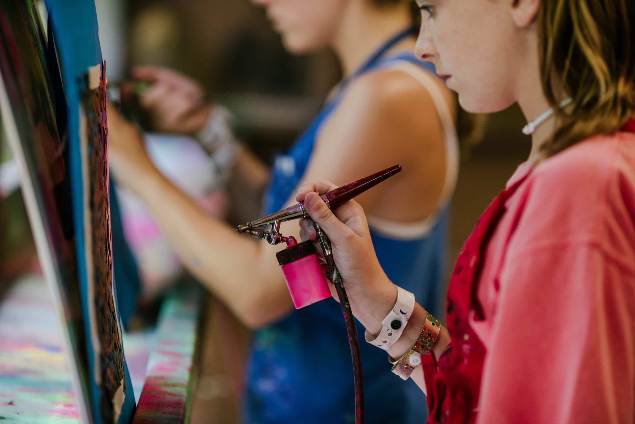 Airbrushing is a fantastic class to let your camper’s inner-artist run wild! In this class each camper will focus on learning different airbrush techniques. The camper will then develop his or her own creative design that will be transferred to a t-shirt using an airbrush run by a compressor. The final product is always a hit!