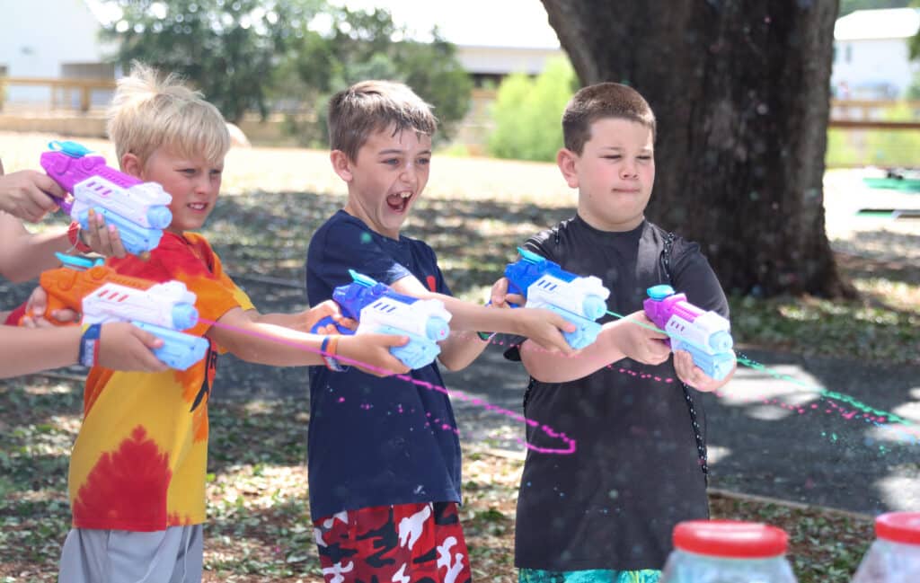 Campers shoot paint on their canvases to create a truly unique and fun piece of art!